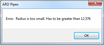 The form indicates what the minimum radius (in metres) required is for a curved pipe to exist between the two structures. OK Press OK to continue and the user is return to the initial command prompt.