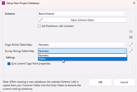 This overrides the default data folder location and facilitates multiple drawings operating through the one Project Database.Cogo Points Table Map