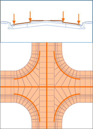 Establish the elevations for the Centre Alignment and Outer Alignment strings by setting the intersection strings for the tee/cross road intersection Setup Elements Automatically