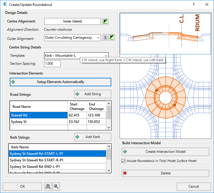 Create the Roundabout Intersection and optionally include it in the Auto Model creation process Create Intersection Model